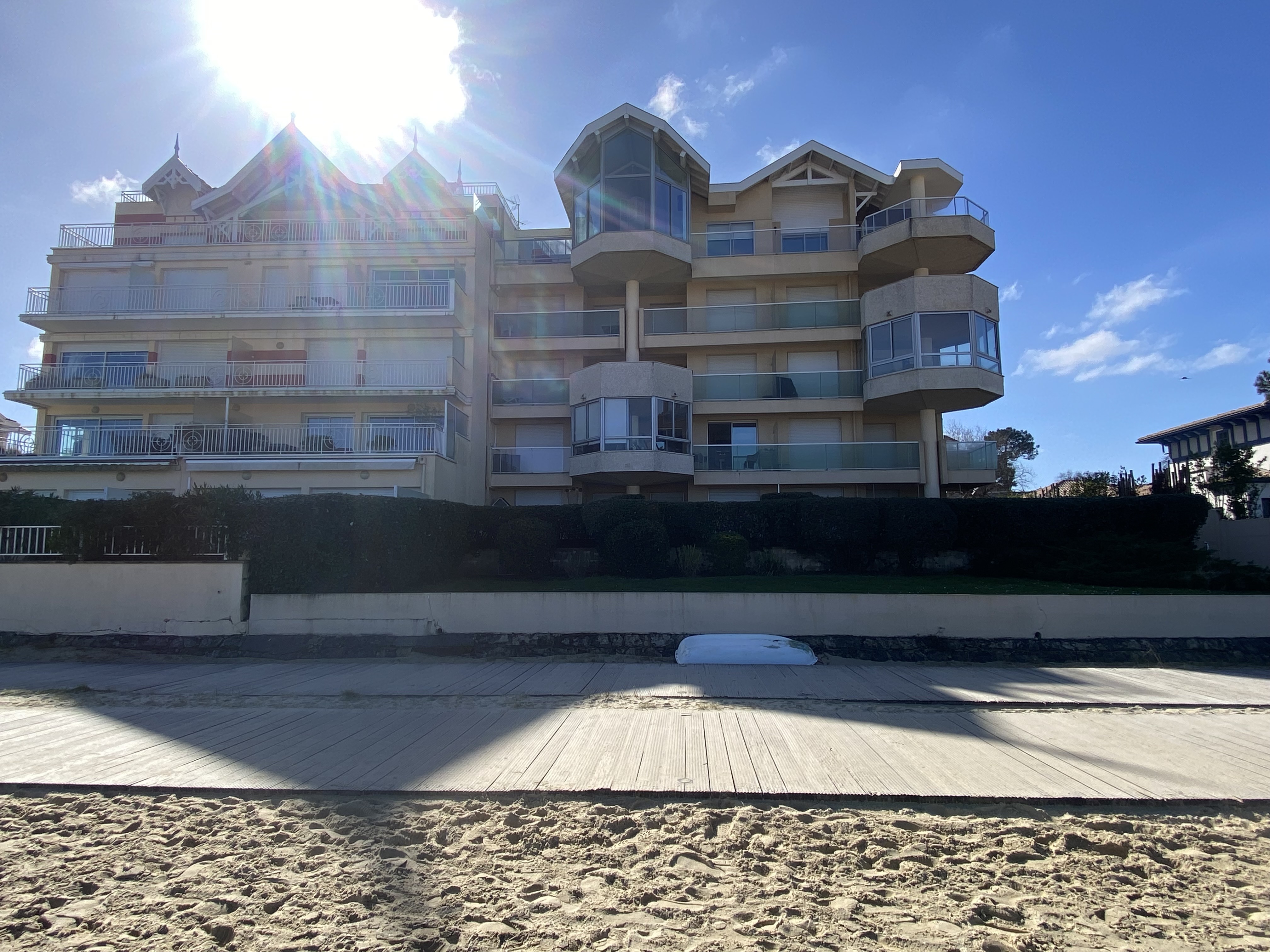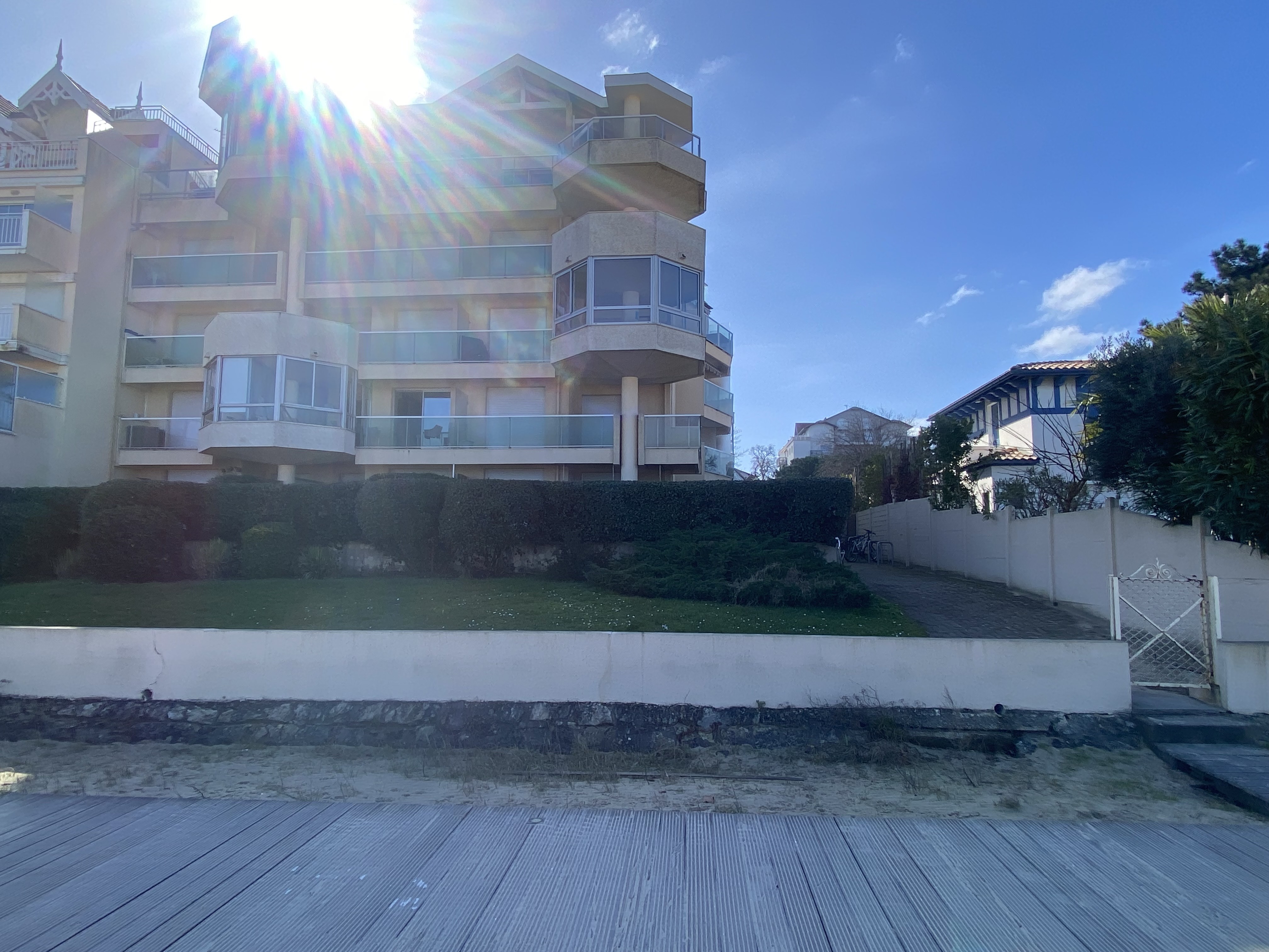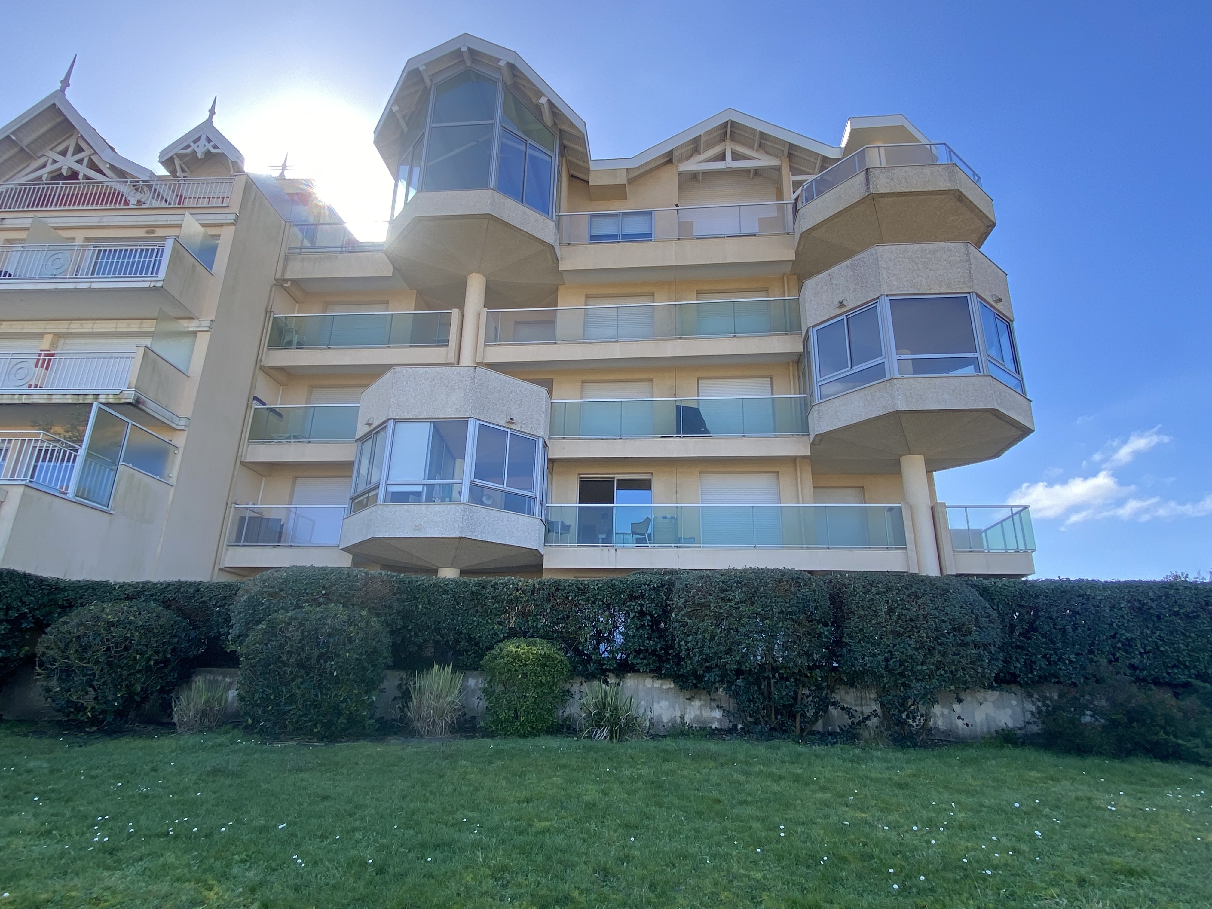Situé dans le quartier de la ville d'automne, à 900m du Casino et du centre ville, Appartement de 40 m² au 1er étage d'un immeuble de 4 étages avec ascenseur avec accès direct plage par un portillon :