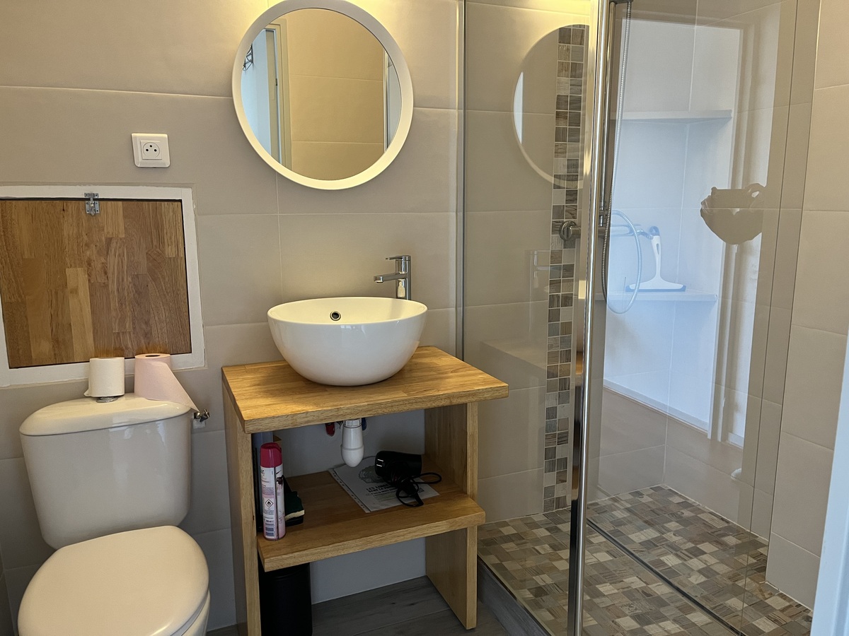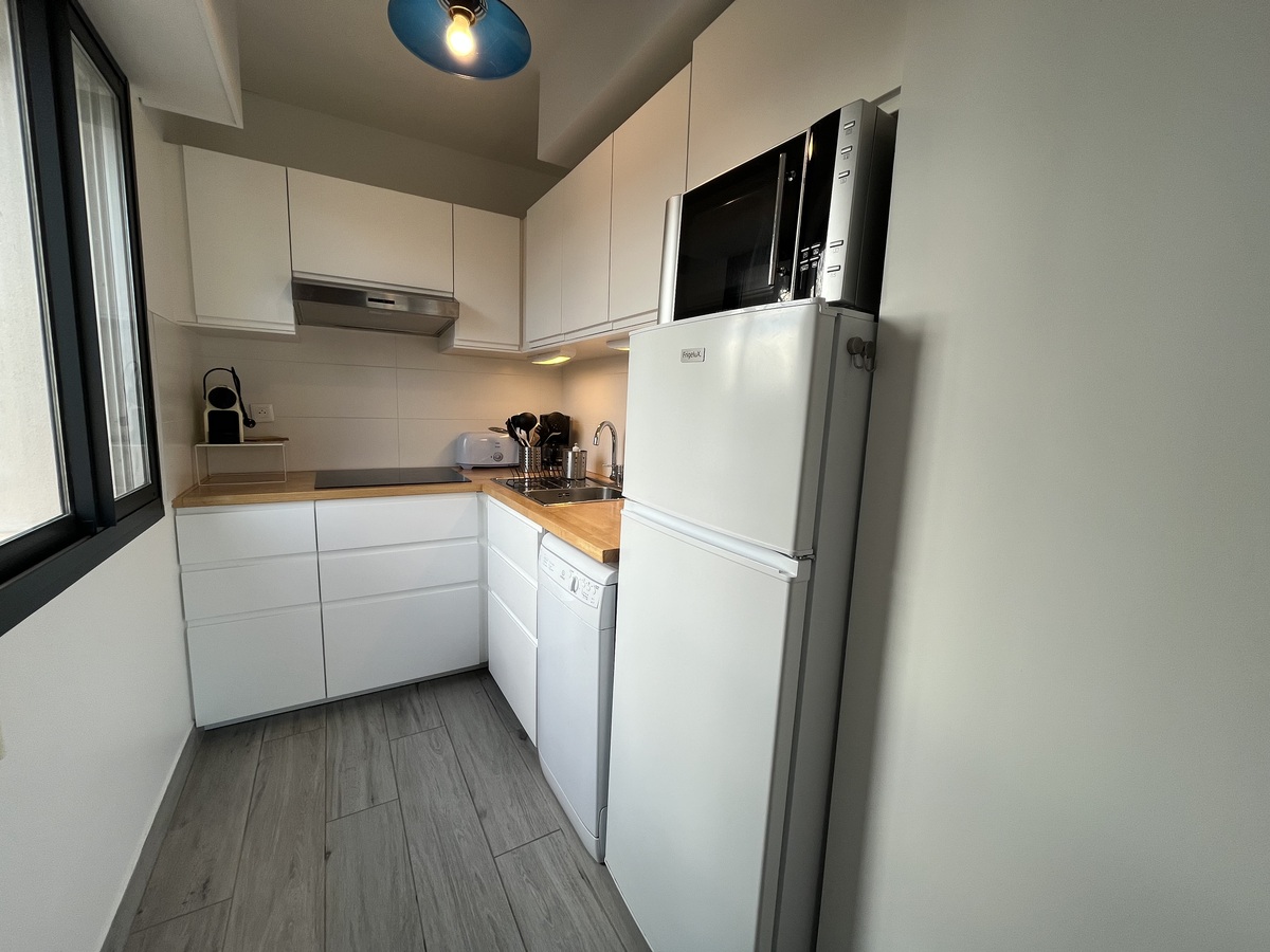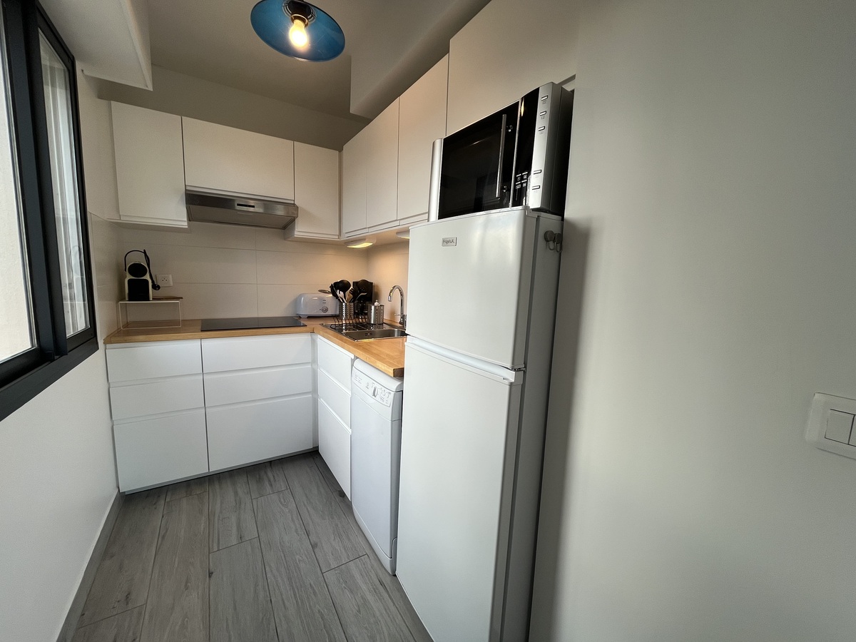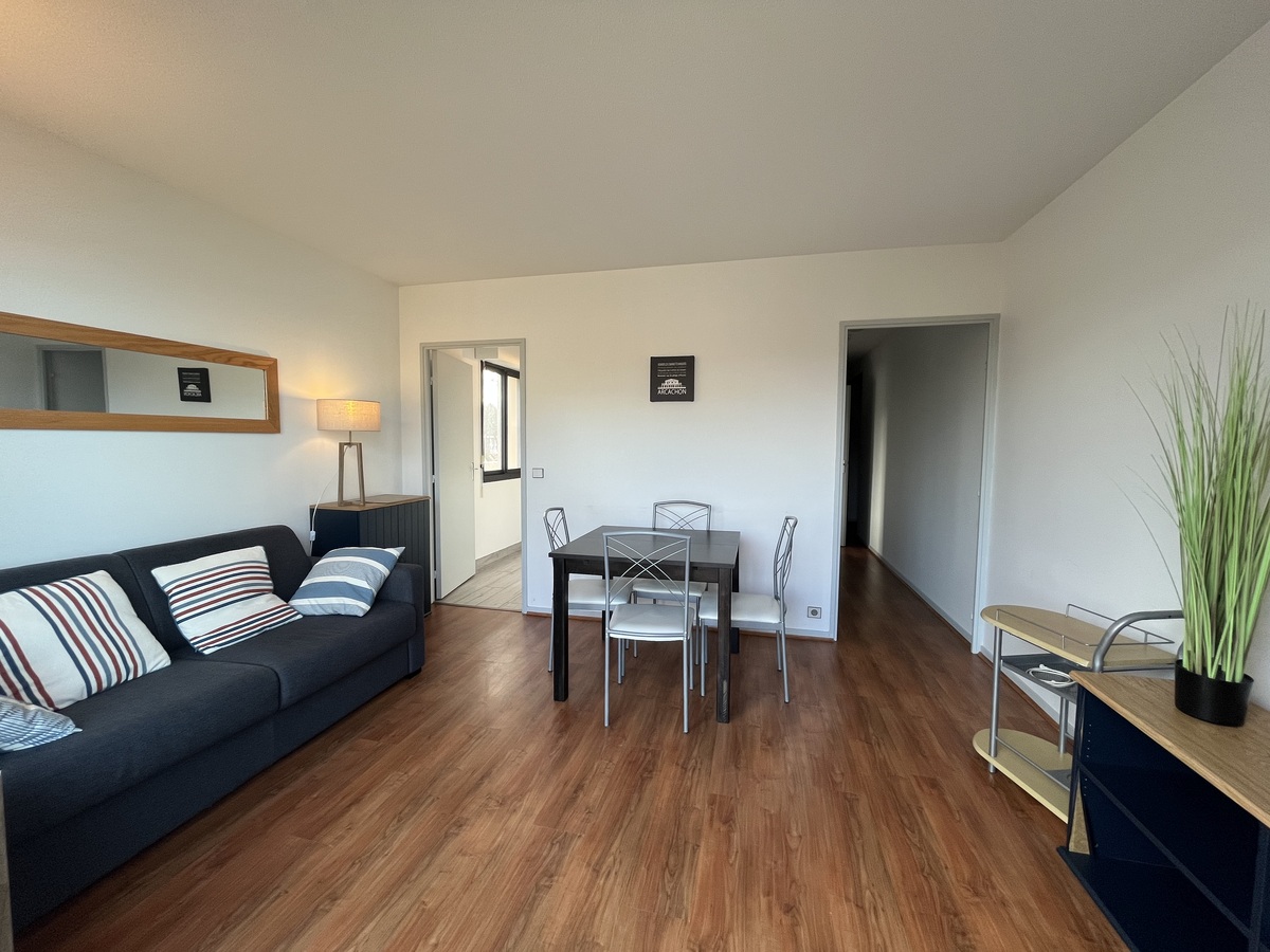 Superbe T2 situé au 3éme étage d'une résidence composé d'une cuisine équipé, d'un séjour avec une terrasse latérale mer, 1 chambre, 1 salle d'eau avec wc, d'un cellier.