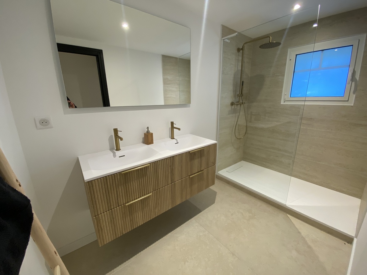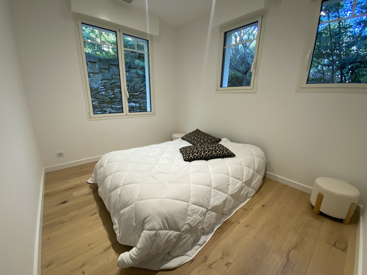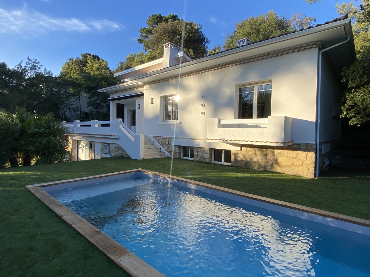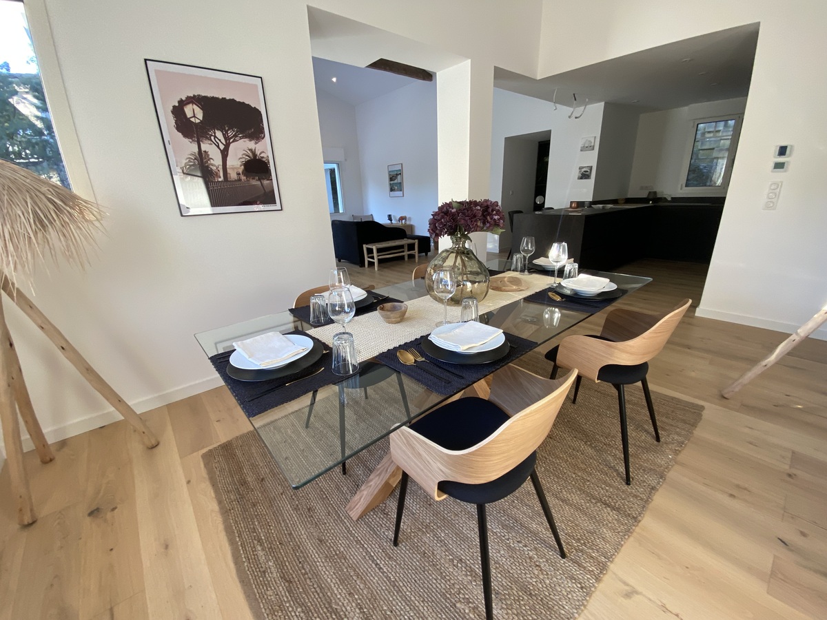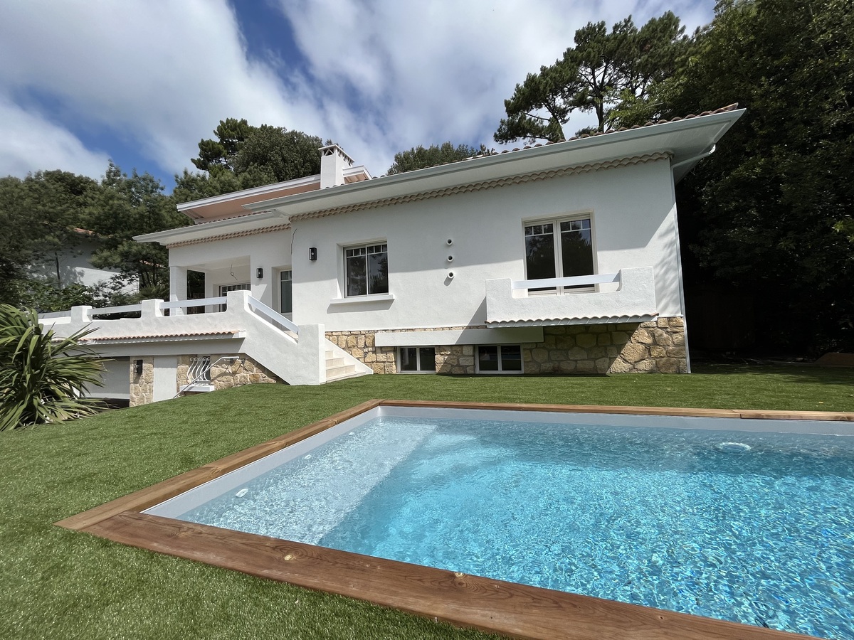 Situés dans le quartier résidentiel de Péreire à 300m de la plage, sur un terrain de plus de 1000m2, très belle maison de 142m2 entièrement rénovée sur 2 niveaux comprenant :