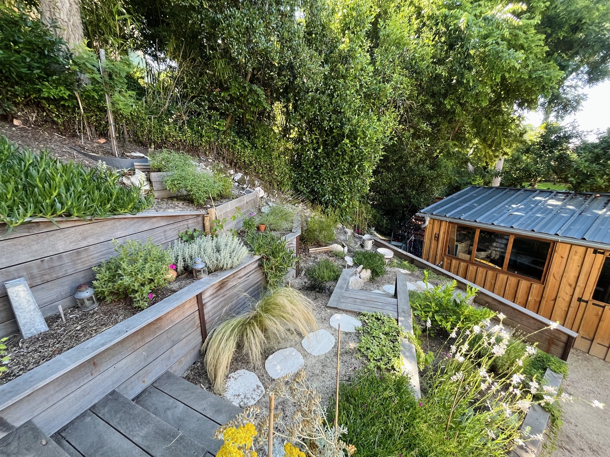 - en rdc surélevé, une entrée, cuisine équipée ouvrant sur un double séjour. De grandes fenêtres et porte fenêtre confèrent une belle luminosité à ces pièces et vous permettent un accès direct à la terrasse et au jardin savamment paysagé. Un chambre avec salle d'eau et wc viennent compléter ce niveau.